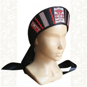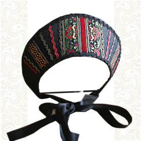 Сзади кокошник завязывается широкими лентами-крыльями из парчи. Высота кокошника - 14 см.