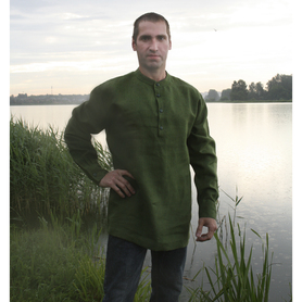 Выполненная из красной льняной ткани косоворотка «Добрыня» полностью соответствует русскому традиционному стилю.