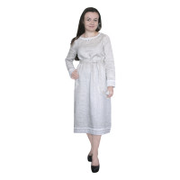Цвет платья: белый. Материалы:  лён, жаккардовая тесьма.