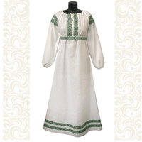 Фасон платья очень удачный и хорошо подходит всем покупательницам: горловину можно регулировать, рукав реглан хорош для всех типов фигур, удлиненный и немного расклешенный силуэт, как принято на Руси, слегка завышена талия. К платью прилагается длинный пояс с декором. Хочется отметить, что платье хорошо сидит на крупных и полных фигурах.