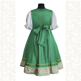 Платье «Дмитра» отрезное по талии, рукав реглан, юбка-почти солнце, длиной немного ниже колена. В комплект входит пояс. Важно, что декор платья выдержан в славянском стиле. Это платье - современное прочтение народных традиций. Женственное, удобное и нарядное, оно дарит ощущение радости и праздника. По стилю замечательно подходит для тематических праздников в детских учебных заведениях, по фасону и яркости цветов отлично подойдет для танцевальных коллективов. как правило, дети не стесняются надевать его ( в отличии от длинного русского сарафана ) Платье выполнено из немнущейся, матовой ткани "габардин" символичных для славян цветов ( красного, синего, зеленого, бордового).