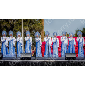 Сарафан с блузой «Гжель-2» – яркий наряд в духе народных традиций. Оригинальный дизайн, красивые оттенки синего, бирюзового, белого цветов, качественное исполнение комплекта порадуют Вас. Это хороший выбор для участников танцевально-театральных коллективов.