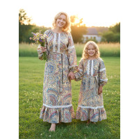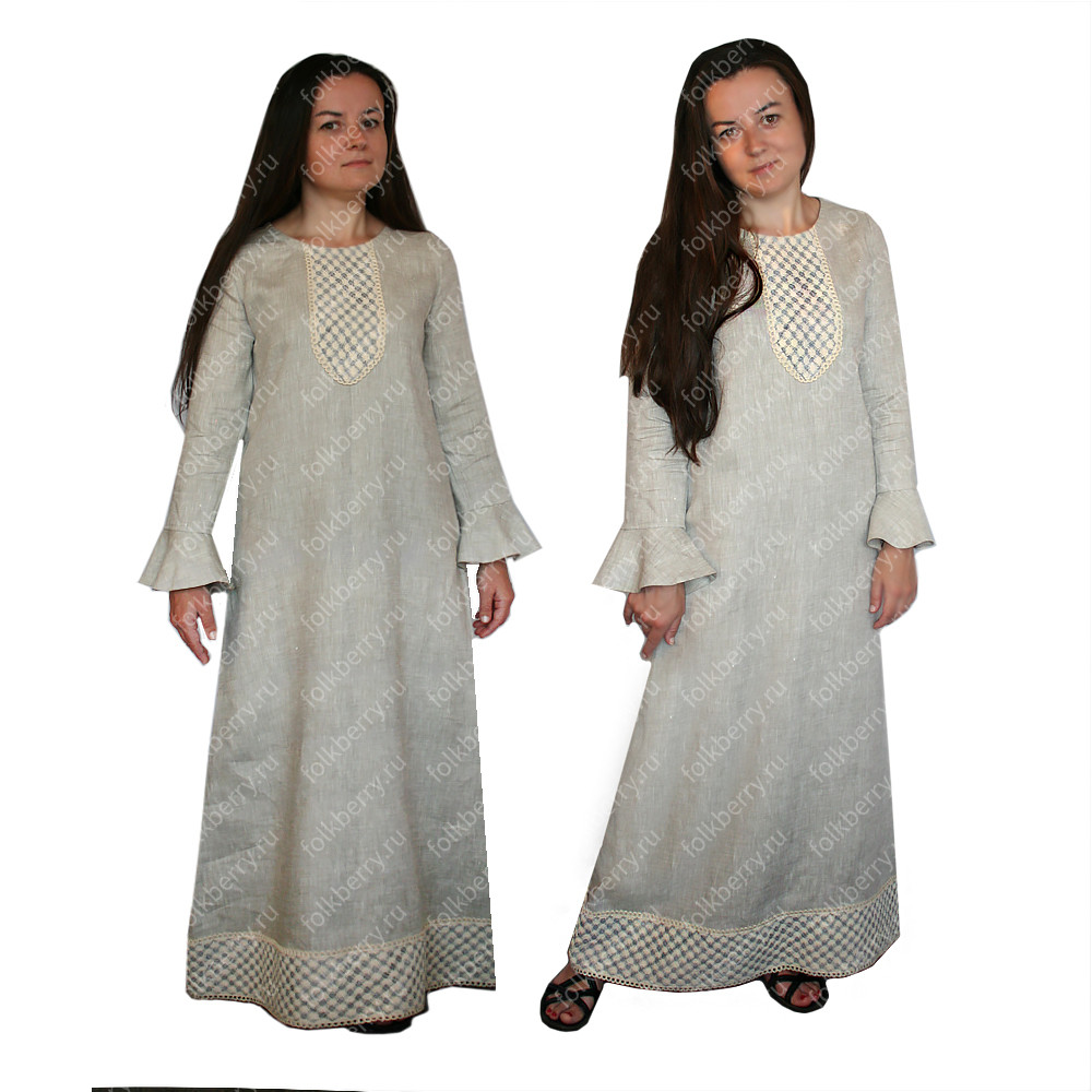 Платье "Яся" выполнено в стиле бохо, из мягкого натурального льна, декорировано натуральным кружевом. Ткань мягкая, плотная, комфортная, не просвечивает. Платье длинное, расклешенное книзу, руквав заказнивается воланом. Платье украшено ажурным молочным кружевом (11 см шириной) с красивым плетением, прилагается пояс.