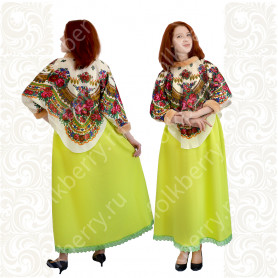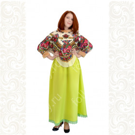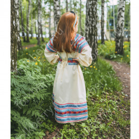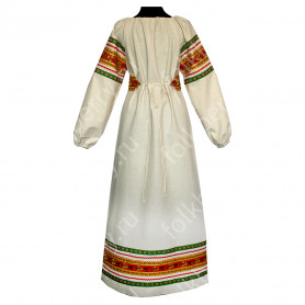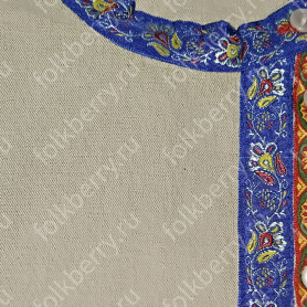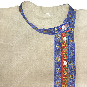 Материал: лен – 70%, хлопок – 30%. Ткань качественная, хорошей плотности, не просвечивает, красивого цвета. Возможны комбинированные модели, со вставкой, отличающейся по цвету, и машинной вышивкой.