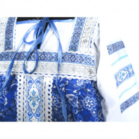 Материал: лен – 70%, хлопок – 30%. Ткань плотная, не просвечивает, насыщенный цвет и хорошее качество. Возможно выбрать комбинированные порты, со вставкой другого цвета и машинной вышивкой.