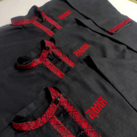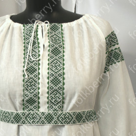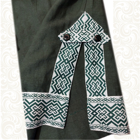 Материалы: лен белый, жаккардовая тесьма с обережными символами