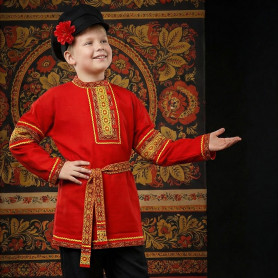 Рубаха Истоки, белый хлопок с красным