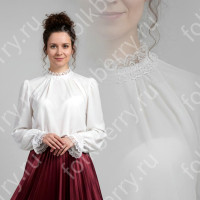 Блуза с коротким пышным рукавом-фонариком, белого цвета выполнена из хлопка .