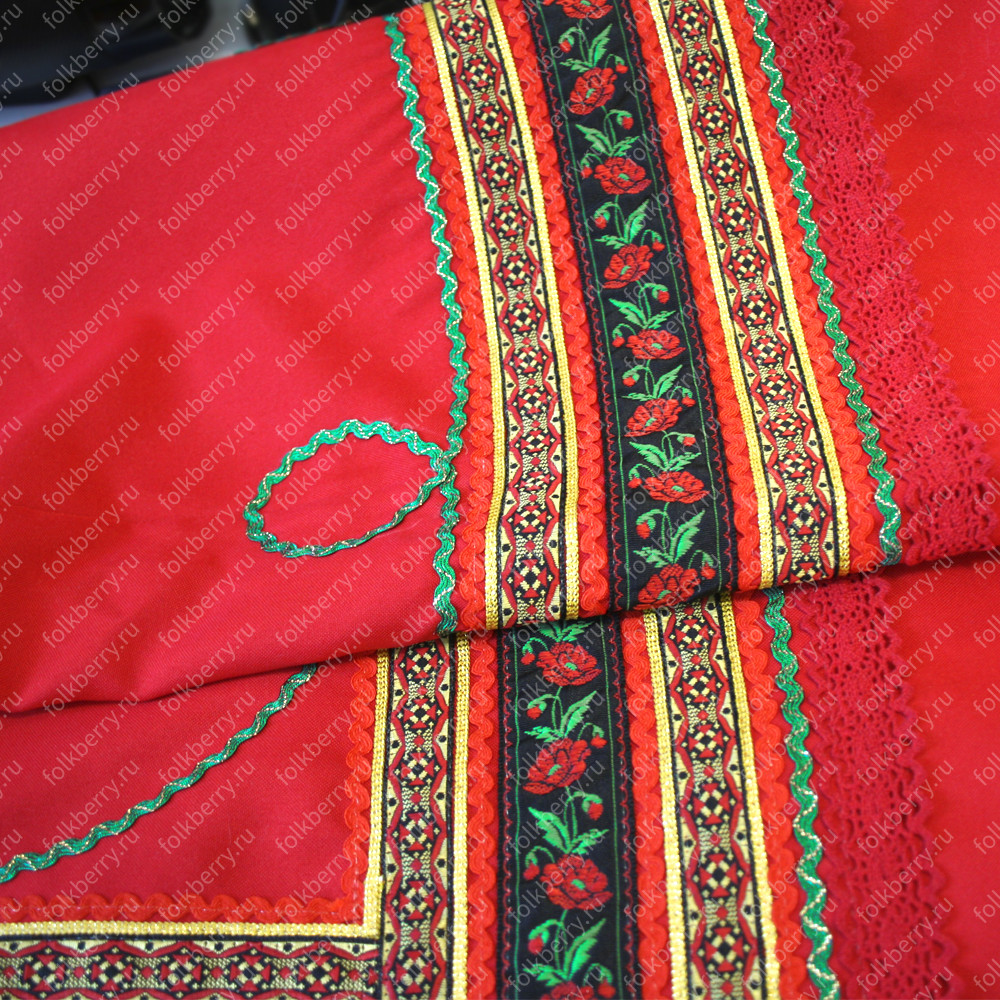 Сарафан с блузой «Дарина» выполнен в красном цвете в традиционном русском стиле. Плотный матовый габардин не мнется, не блестит под софитами.