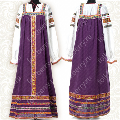 Сарафан с блузой Народный, габардин и хлопок, фиолетовый